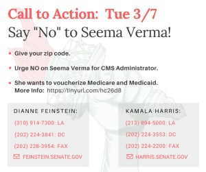 No on Seema Verma to lead the Centers for Medicaid and Medicare Services – Call our Senators!