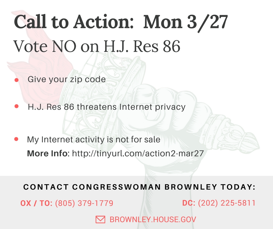 No on H.J. Res 86. Don’t sell my Internet privacy! (2 of 2 today)