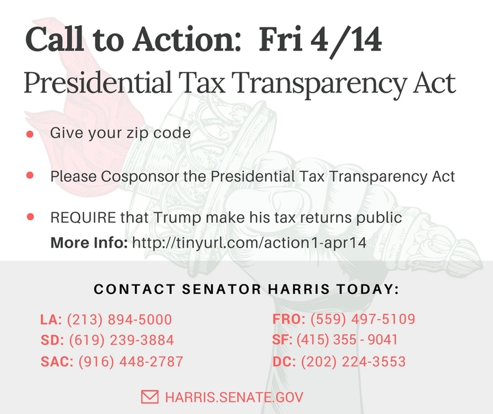 Ask Our Senator to Act Now! Let’s See Trump’s Taxes!