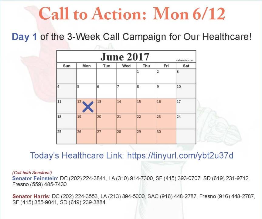 (See the full description of the 3 Week Campaign and tips for people who hate making calls here: https://indivisibleventura.org/2017/06/09/ready-aim-fire-the-3-week-war-begins/#more-7064)