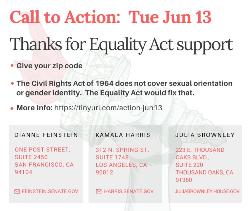 Our legislators stepped up, so let’s thank them. They’re cosponsoring the Equality Act (S.1006/ HR 2282)!