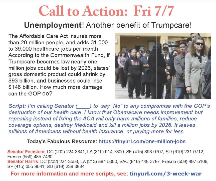 For more scripts, how to call if you hate calling and additional information, see: tinyurl.com/3-week-war
