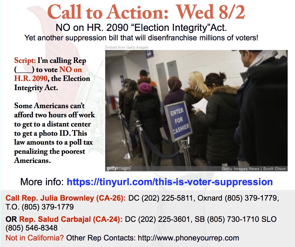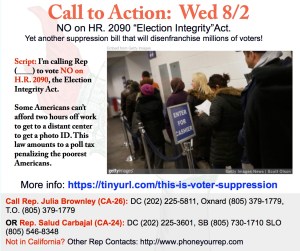 NO on HR. 2090 “Election Integrity”Act. Yet another suppression bill that will disenfranchise millions of voters!