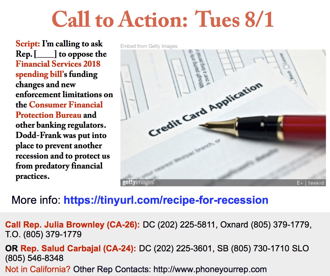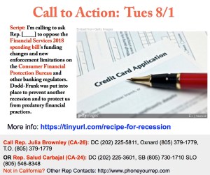 No to gutting our Consumer Banking Protections – A recipe for recession!