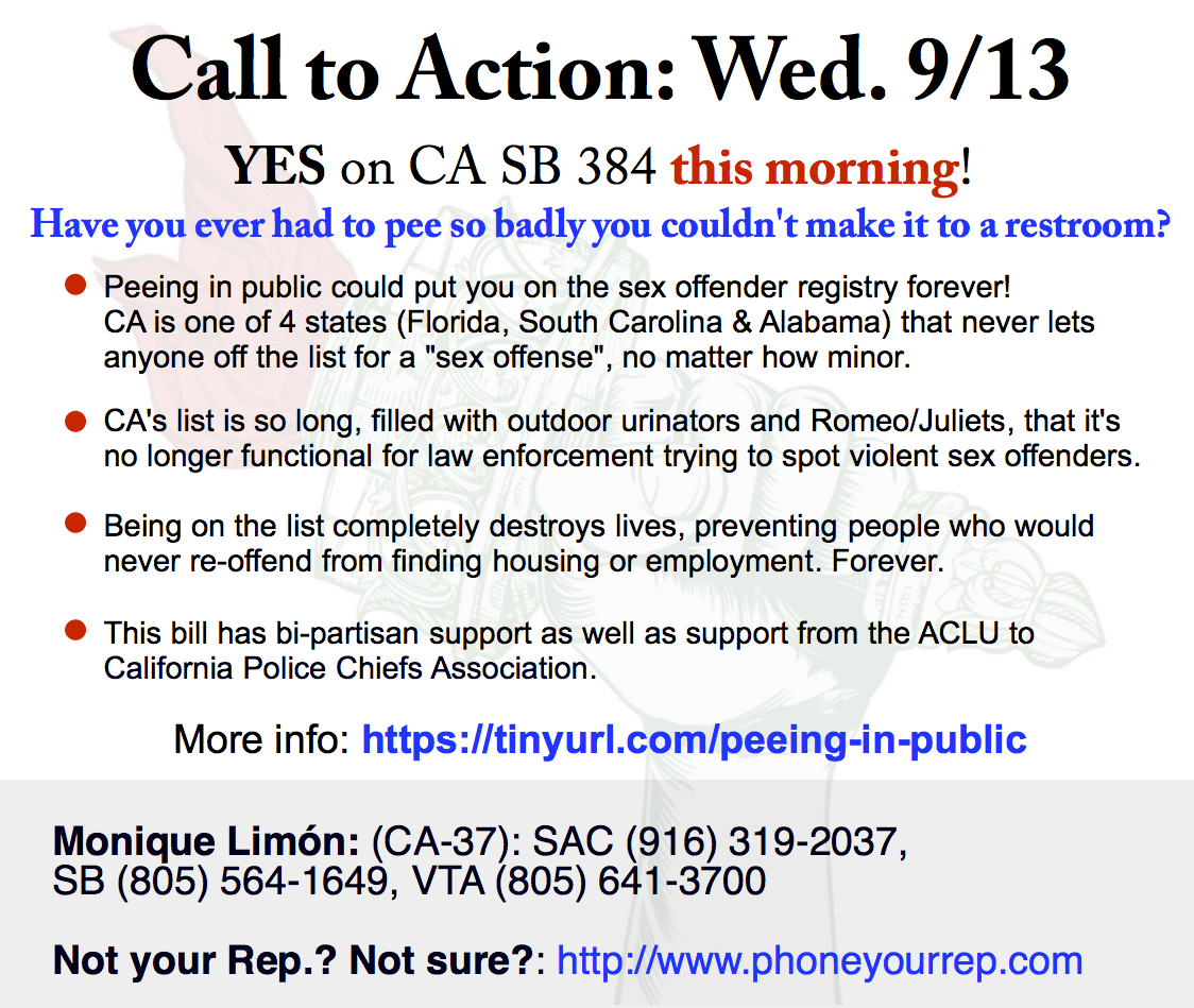 Need to pee? Can’t make it to the restroom? Do you feel lucky? YES on SB 384.