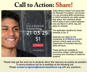 DACA students at community, CA State colleges and University of CA – DACA Fee scholarships here! Share!