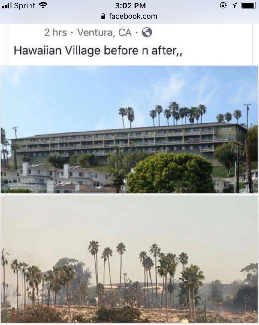 Today is a continuation of our “Evacuation Special”, as our town and surrounding areas are literally on fire and we’ve relocated to a location with terrible internet access. Today’s post will be notable for its lateness and weird format. (Picture of Hawaiian Village Apartments, which housed 50 families, including two of our members.)