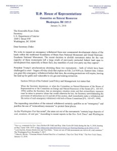 Letter to Secretary Zinke Requesting Withdrawal of Bears Ears National Monument Area