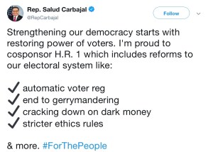 Mon – 1/7: It’s starting! Thank our legislators for supporting basic democracy with H.R. 1 and remind both houses that we’re watching…