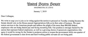 Tues 1/8 – Priorities, people! Oppose all legislation in the Senate until the government is re-opened.