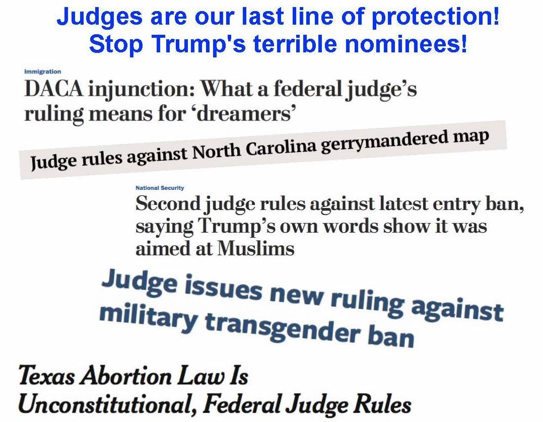 Thur – 2/7: Trump is tired of being stopped by judges. So he’s destroying our courts, one nominee at a time. CALL!