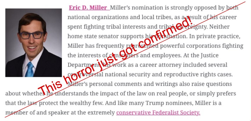 Action #2 – Neomi Rao passed the Judiciary Committee and is headed to the floor.