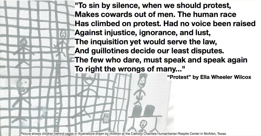 Hate has again taken human form, in the malignant leaders of our own government. Every day, we see crimes against humanity being sponsored with our own tax dollars. That we are seriously arguing as whether or not a facility is a concentration camp, shows how far we’ve fallen. That we sit quietly, while young children are dying or being terrorized in our custody, shows that we are not who we think we are.