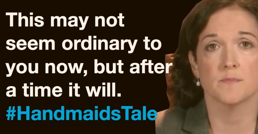 - Wow! This is interesting!: With people like her in charge, application forms – for apartments, jobs, even loans, may get a lot more intrusive, at least for women. “She fought a local St. Louis ordinance that barred discrimination based on “reproductive health decisions.” The law was aimed at preventing employers from hiring or firing people based on whether they use contraceptives, get pregnant outside of marriage, or have had an abortion. It also barred landlords from refusing to rent and banks from refusing to grant loans to people, based on those same criteria.” The GOP pretends to advocate for smaller government, but this amounts to opening up every woman’s nightstand drawers for inspection by radical religionists.