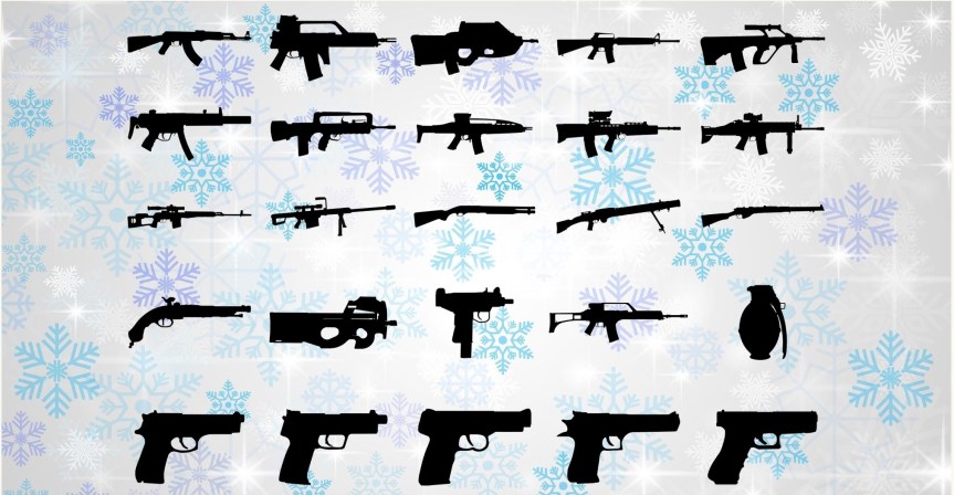 ‘Tis the season of inappropriate gifts and Amazon has just withdrawn Holocaust-themed Christmas ornaments and bath towels. Let’s ask them to go a bit further. We can’t replicate their onsite photos so just click this link: “toy guns that look like assault rifles“. What you’ll see will include: