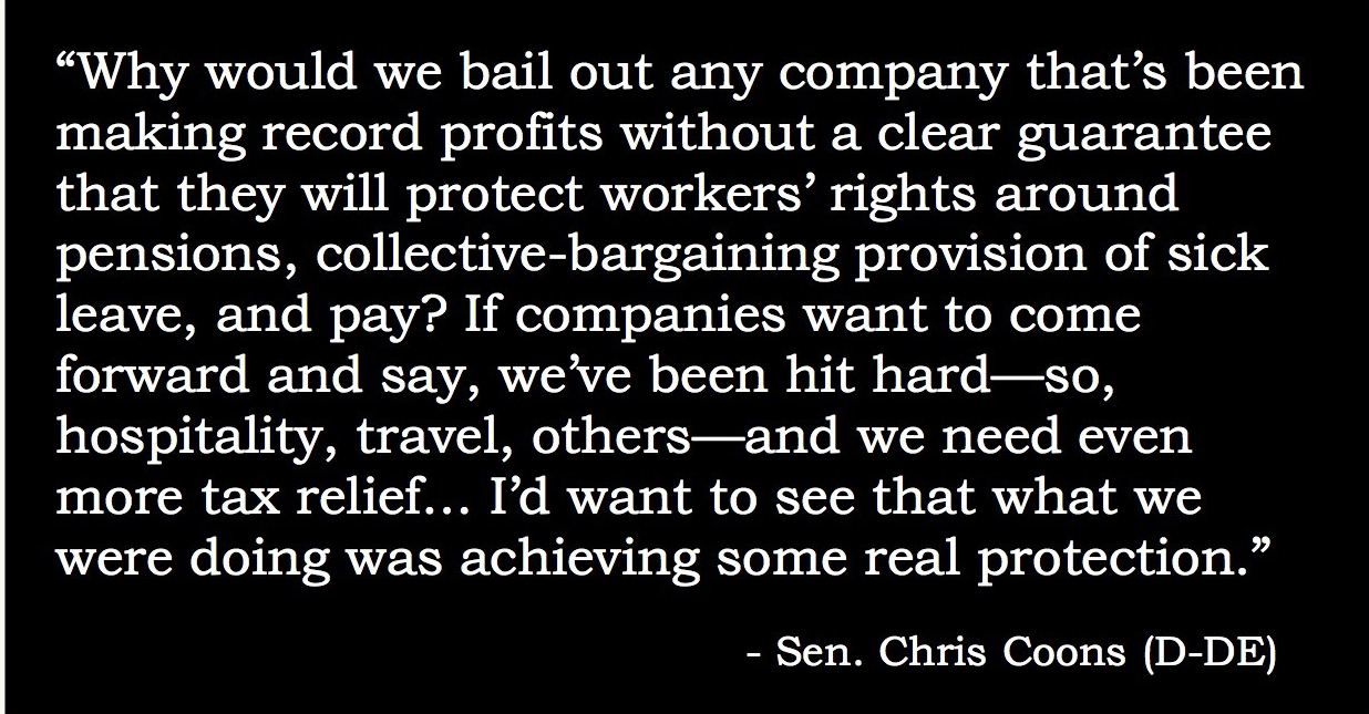 Wed 3/18: Tell your legislators that it’s now or never. Force through worker protections before corporations get a dime of bailout money!