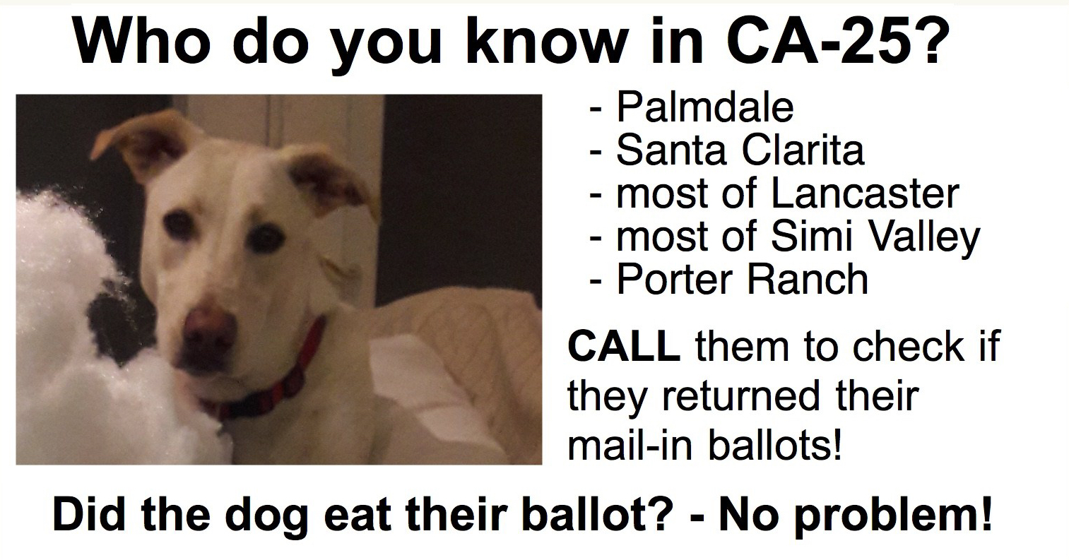 Tues 5/12: It’s election day for CA-25! Even if you don’t live there, you can help Christy Smith win!