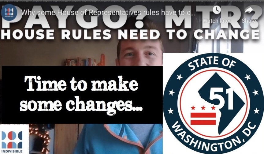 Minimal script: I’m calling from [zip code] to tell Rep. [___] to vote to remove two provisions that present a barrier to the progressive legislation we expect to see from [him/her): the “Motion to Recommit” (or “MTR”) and the “Pay as You Go rule” (or “PayGo”).