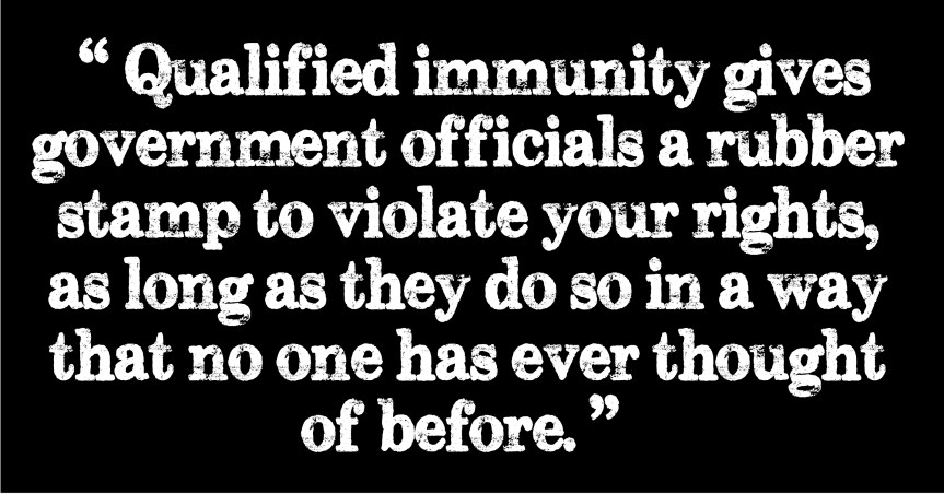 If it had been passed as written, it would have codified gualified immunity as a defense for those government workers who were not police – such as “social workers accused of sexual harassment, prison guards who forced a “completely innocent” woman to remove her tampon for inspection, and medical board officials who rifled through a doctor’s office without a warrant.“