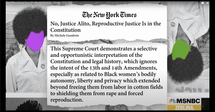 - (NYTimes) No, Justice Alito, Reproductive Justice Is in the Constitution