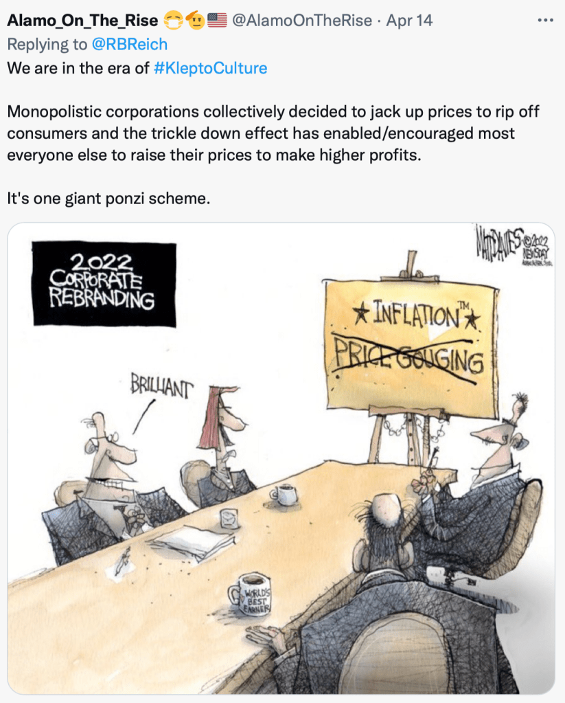 Corporations have hidden obscene price increases behind the inflation, affecting products from food to gas and raking in record profits. And unlike small businesses who could be prosecuted for price gouging during times of crisis, limited competition means there are no real market forces to stop the huge ones. But those profits are not enough for America’s oligarchs…
