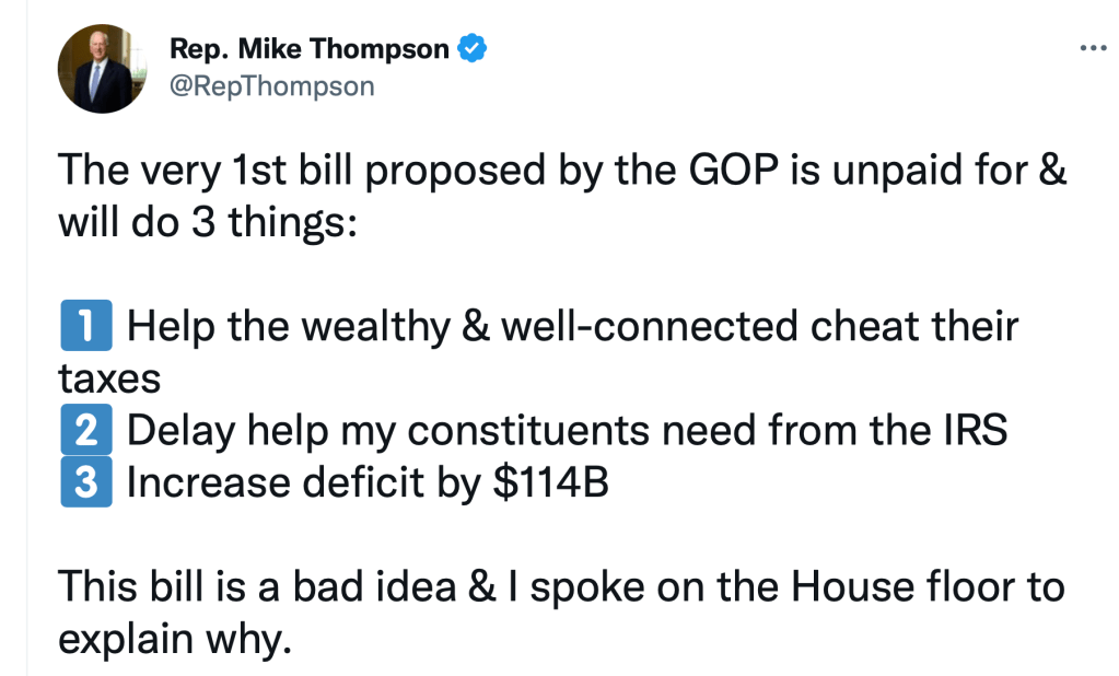 (Watch his short speech here: https://mobile.twitter.com/RepThompson/status/1612613461384601607)