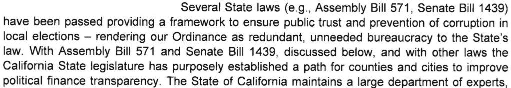 9. Apparently, the state’s SB 1439/Levine Act law was SO IMPORTANT, that our ordinance had to go. But what if that law is thrown out too?