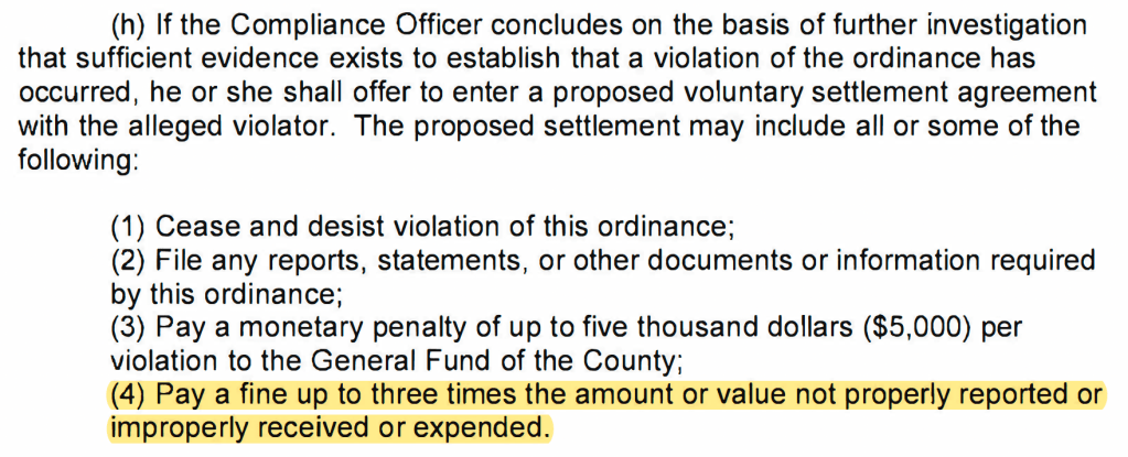 Under our own ordinance, a local candidate could receive a letter about a violation from the Ventura County Elections Division containing this paragraph…
