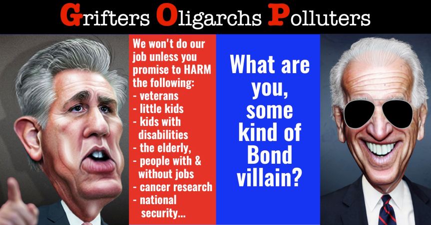 PLEASE DON’T NEGOTIATE with McCarthy and the Republican radicals on the debt limit! They threaten to destroy America’s economy if you don’t compromise, and they are guaranteed to harm untold millions of us if you do. A better example of economic terrorism would be hard to find. In fact, they may “want a crisis, preferring to watch the world burn under a Democratic administration.”