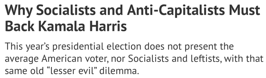...I believe that even if the election of Harris does nothing more than slow down the solidification of the growing American fascism, it will, at least, give us time to continue to build on the renewed militancy and recent successes of the U.S. labor movement, of the anti-racist/anti-xenophobic movement, the women’s and environmental movement, and the anti-war and gender freedom movements…”