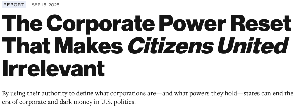 - (American Progress) The Corporate Power Reset That Makes Citizens UnitedIrrelevant