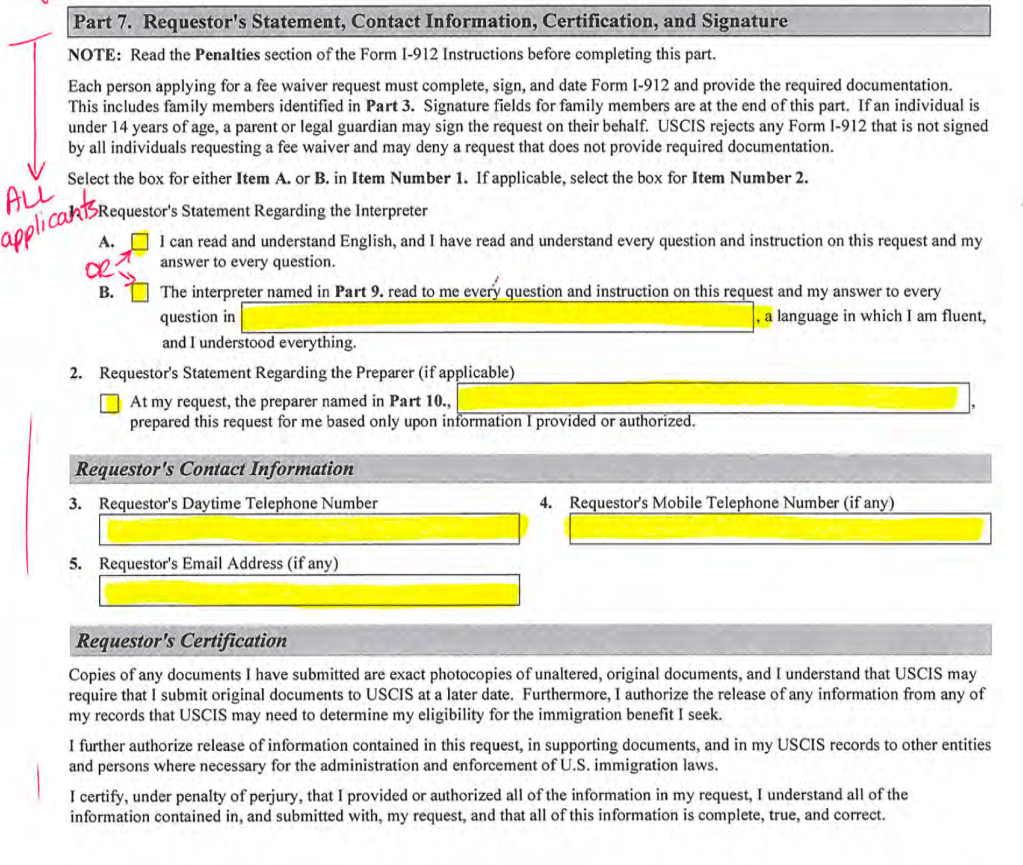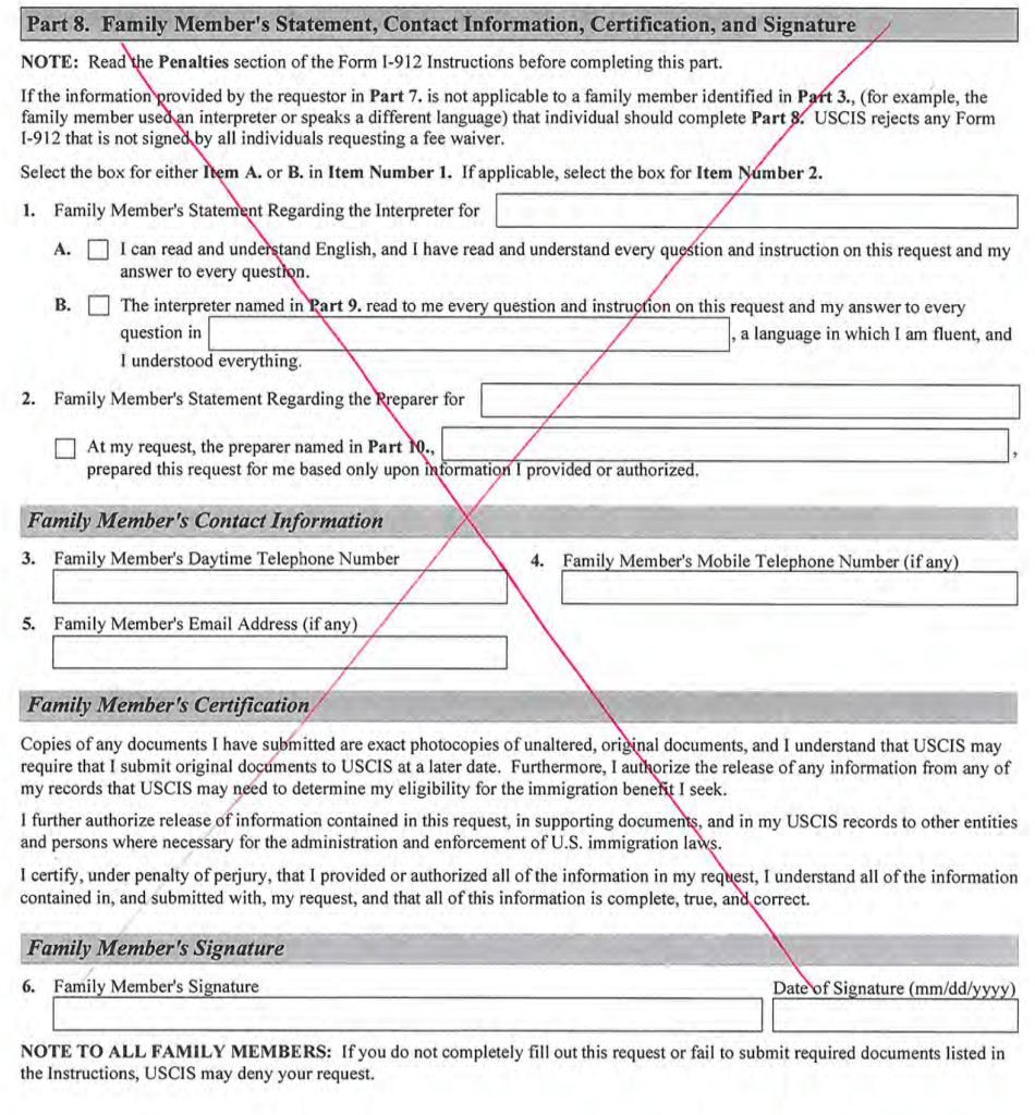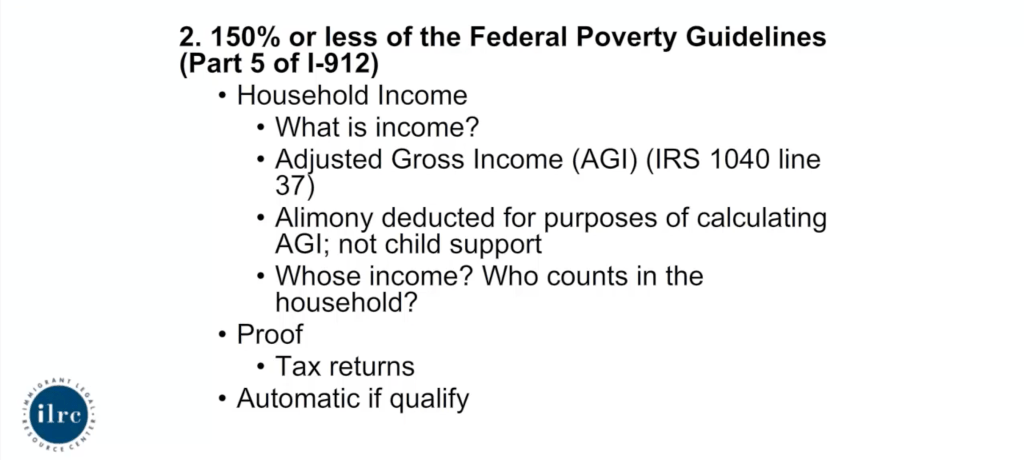 - I-912 – Fee Waiver (150% or below Fed. Poverty Guidelines)