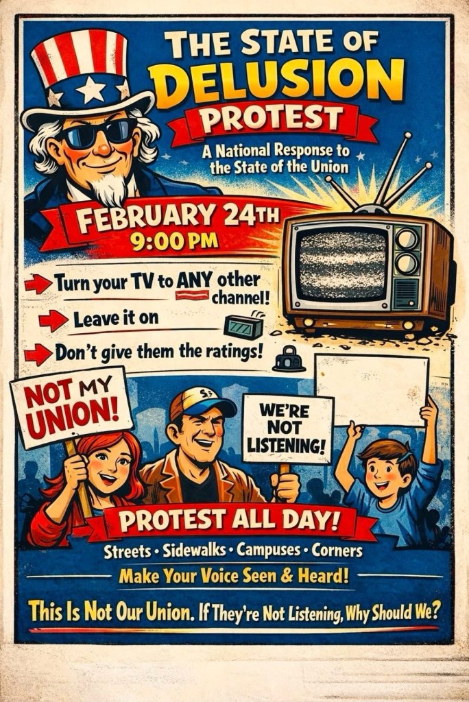 Most people have to work on Presidents’ Day Monday, so our coalition is having a “NOT MY PRESIDENT DAY” rally on the Sunday beforehand – Feb. 15th.