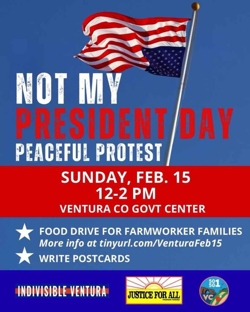 SUNDAYS – WEEKLY PROTEST – Not my Presidents’ Day – Fight for Democracy (12 pm – 2:00 pm) Ventura County Government Center