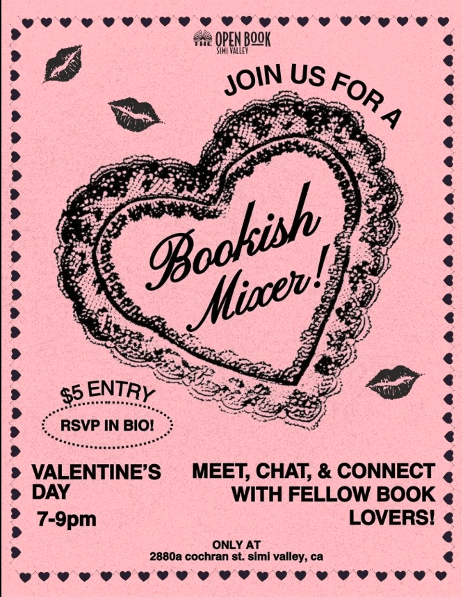 SATURDAY – 02/14/26 – SIMI VALLEY – Bookish Mixer (7:00 pm – 9:00 pm) 2880a Cochran St., Simi Valley