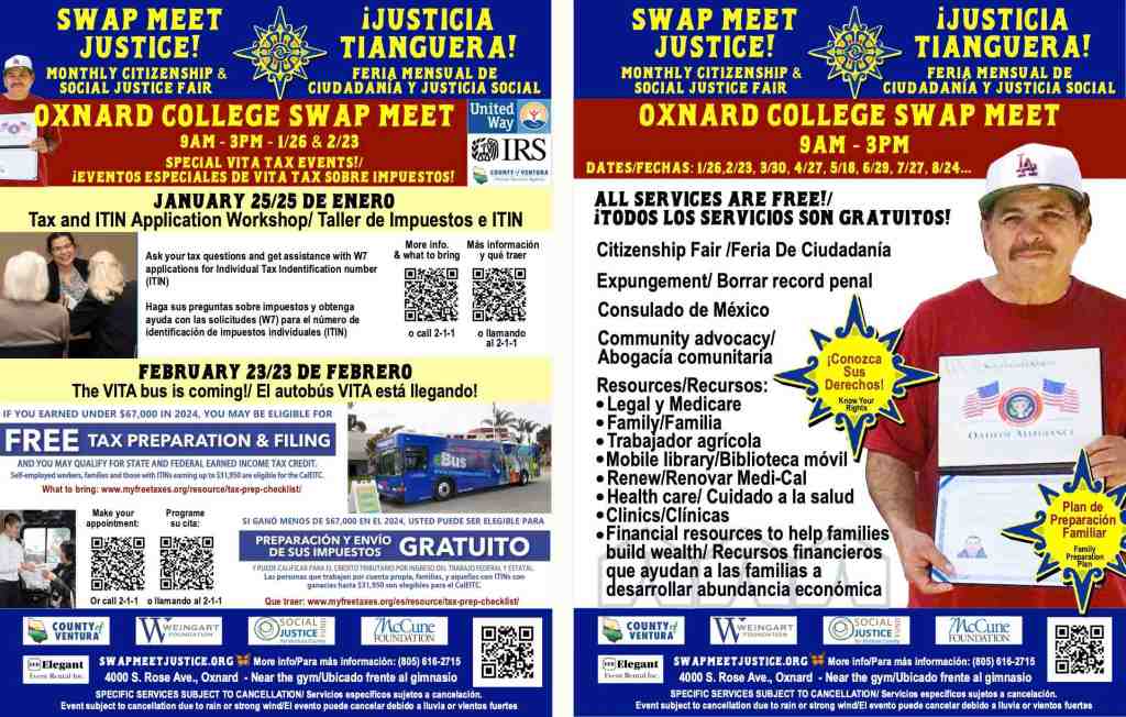 Sunday – 02/23/2025 – OXNARD – Swap Meet Justice Citizenship and Social Justice! (9am-3pm) Oxnard College, 4000 S. Rose Ave, Oxnard
