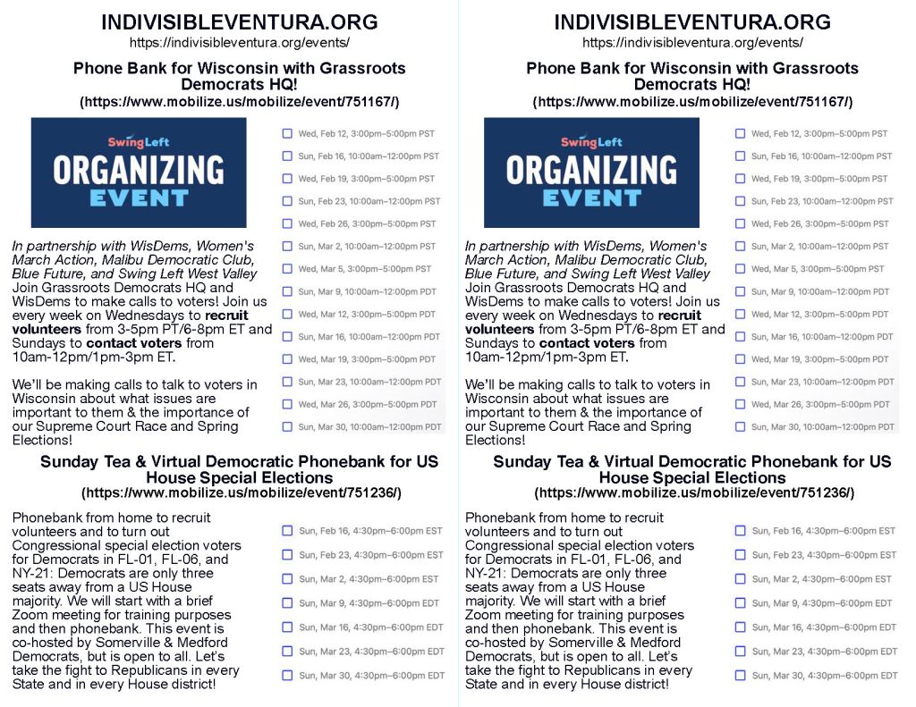 Invite: Wednesday – 03/12/2025 – VENTURA – Indivisible Ventura Meeting (2:00 pm) Topper’s Pizza, 3940 E. Main St., Ventura