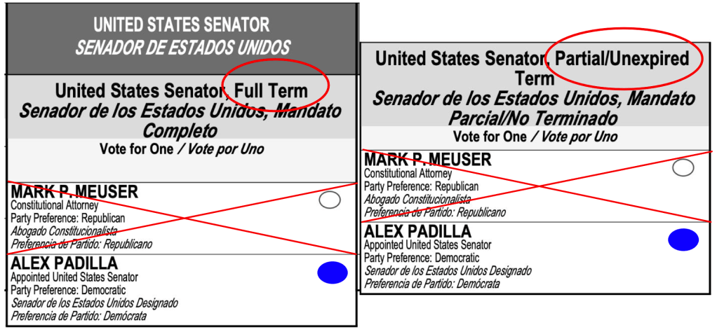 NOTE: You have to vote on a CA senator (Alex Padilla) TWICE.