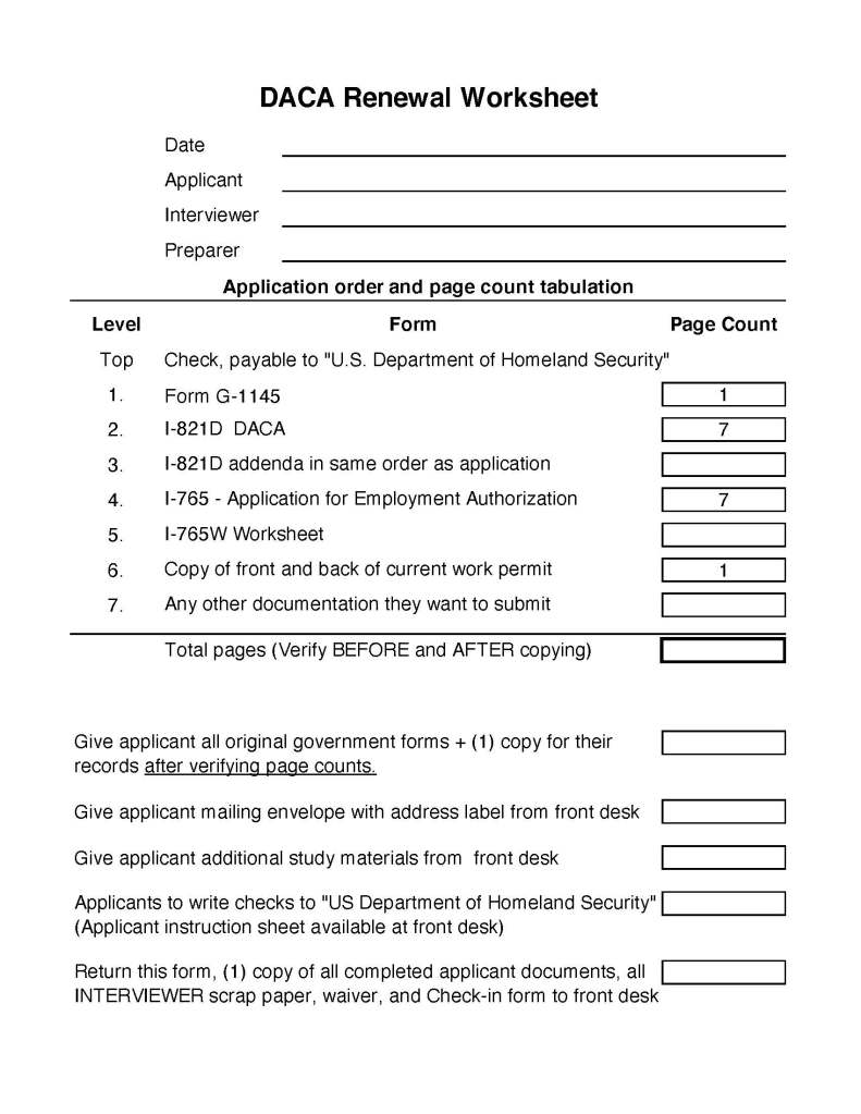 So we’ve created a worksheet (below) to help us double-check that the application ends up with the correct number of pages and goes into the mailer stacked in the correct order and the client gets any additional assistance they may require. Every volunteer team gets a copy of this when they sit down with an applicant.