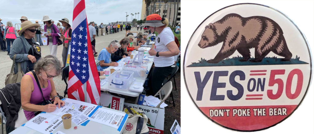 There will be a “LAST DAY FOR PROP. 50” postcarding table! Fill out five (5) cards and get a cool pin!