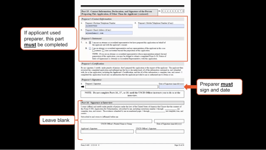 - PREPARER – N-400 FORM