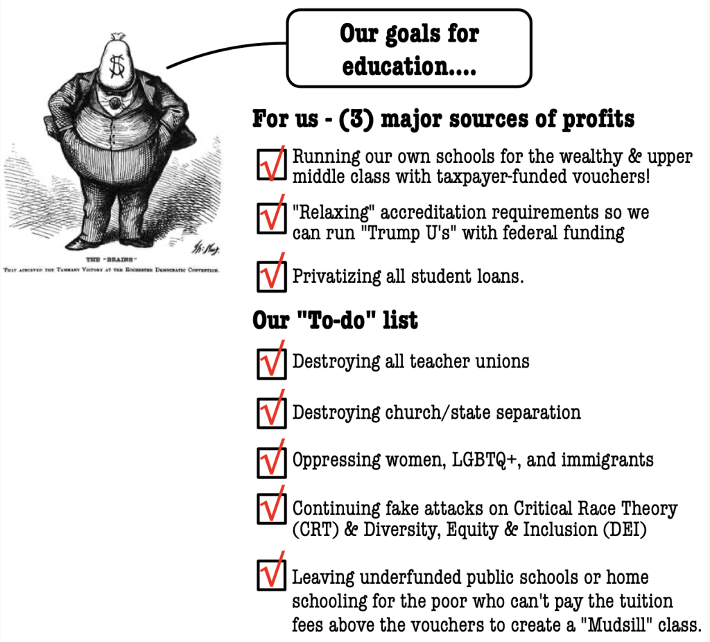 (indivisibleventura) Are you ready for a point-by-point breakdown of Project 2025’s chapter on the destruction of the Department of Education and our public school system? Wanna know who will be the winners raking in profits under a GOP regime, and who will be the losers? Gotta a cup of coffee? Click on the link!