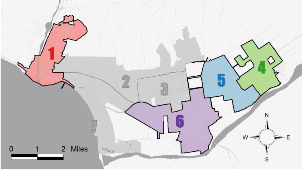 The City of San Buenaventura (Ventura) is a Charter City with a City Council/City manager form of government. Starting in 2018, registered voters elect seven (7) City Councilmembers by Districts. City Councilmembers serve a term of four (4) years with the terms being staggered on a 2-year basis with three (3) members being elected at one election and four (4) at the next.