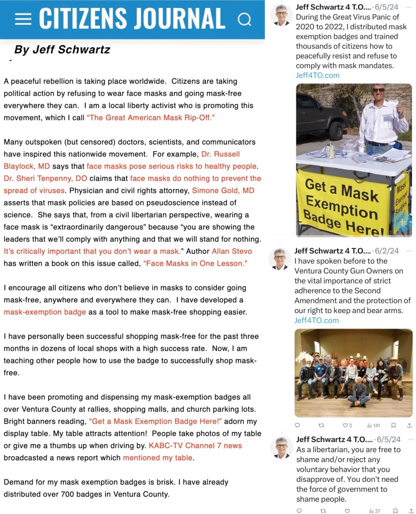 He is both too selfish and gullible to serve as a public official. People infected with COVID removed the FREEDOM TO LIVE from over a million Americans, including the elderly and the immunity-compromised who depended on those around them to take every precaution to protect them. People like Jeff, however, insisted that a relatively minor inconvenience was more important than protecting their lives. He was not alone – Republican political figures like Herman Cain discouraged people from taking it seriously, as did Trump himself. (Cain’s death from COVID after attending a 2020 Trump Tulsa rally without a face mask, inspired the grimly ironic website – the Herman Cain Awards.) Meanwhile scamsters, even ones with medical credentials, jumped in to profit on fake claims and cures.